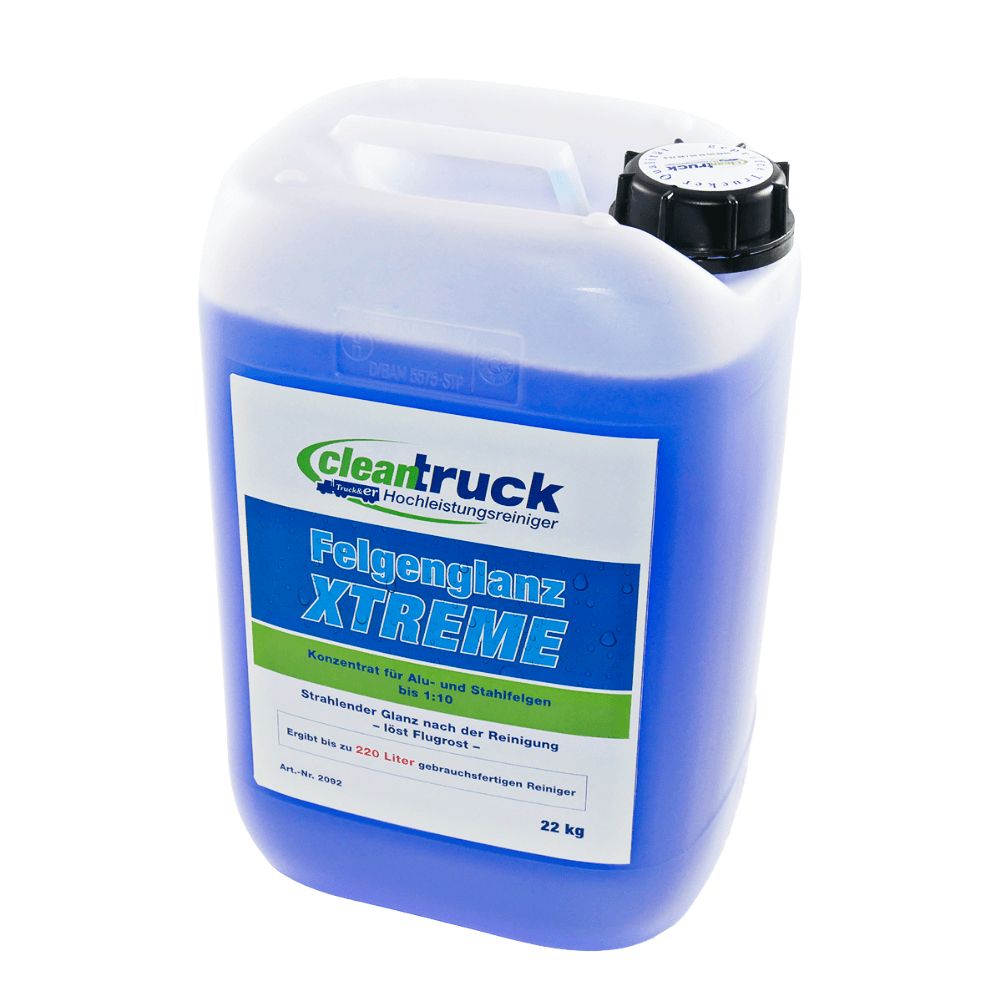 Lkw Felgen sind besonders anfällig für Verschmutzungen und Rost. Daher sollte bei der Felgenreinigung hochwertige Reinigungsmittel mit lang anhaltender Wirkung gewählt werden. Mit dem Spezialreiniger von CleanTruck ist die Reinigung von Felgen ein leichtes. Mittels hoher Konzentration entfaltet der Alureiniger in nur wenigen Minuten seine volle Wirkung und entfernt sämtliche Rostflecken und Verschmutzungen rückstandslos ohne die Oberfläche anzugreifen. Reinigen Sie Ihren Truck wie die Profis - Sie sparen Zeit und Aufwand!